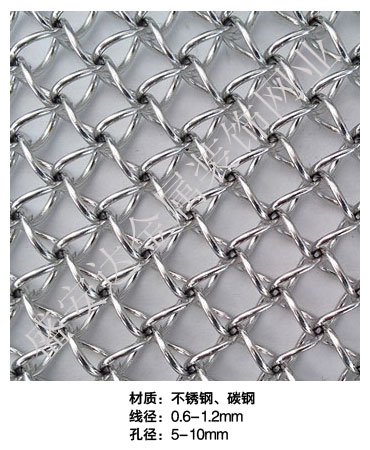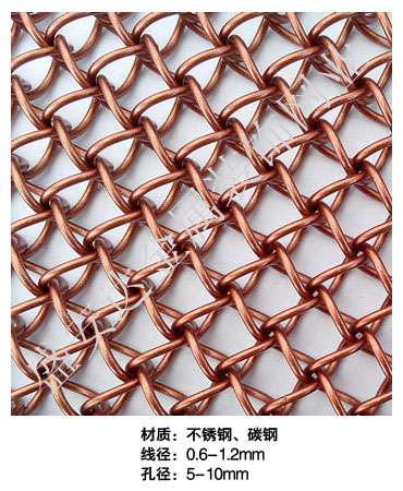 蜂巢網(wǎng)----,是一種新型建筑裝飾材料,采用優(yōu)質(zhì)不銹鋼,鋁合金等合金材料,經(jīng)過特殊工藝編制而成,被賦予了傳統(tǒng)布簾所不具有的的折光效果,讓它具有了動感時尚的特點,再加上它的金屬質(zhì)感的特點,給您的居室頓感典雅氣質(zhì)非凡個性高貴品位,會使高檔賓館,餐廳,歌劇院,展廳變的富麗堂皇。